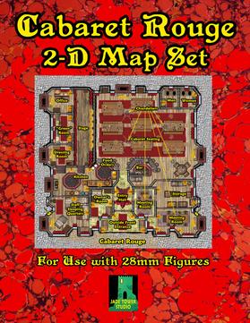 Le Cabaret Rouge is a traditional French-style cabaret in a refurbished ancient building. It is a two-dimensional, top-down map set of a large cabaret with adjoining rooms. Le Cabaret Rouge is perfect for 3 Musketeers-style battles; there are chandeliers to swing on, banquet tables to run across, etc. It's also a perfect venue for a Bard-style character to perform.